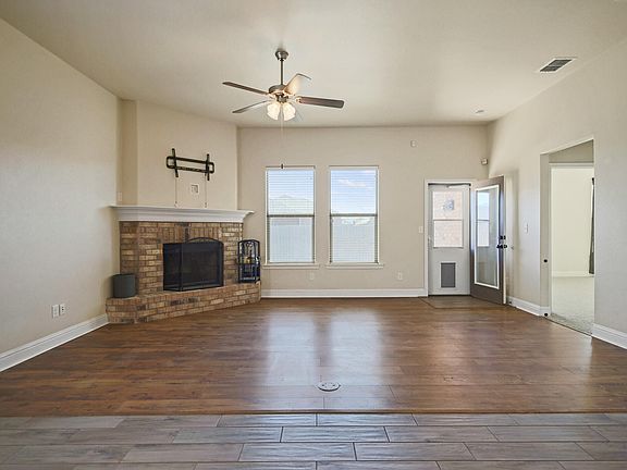 This beautifully maintained home in the desirable Bell Farms neighborhood of South Lubbock is ready for its next owner! The welcoming open-concept layout leads you into a spacious kitchen featuring stainless steel appliances (refrigerator included), abundant cabinetry, a walk-in pantry, and a large peninsula with breakfast bar seating. The adjoining dining area and living room create an ideal space for everyday living and entertaining. The secluded primary suite boasts 9' ceilings and a private ensuite bathroom with double vanities, a soaking tub, walk-in shower, and an impressive 12.5' x 9.5' closet conveniently connected to the laundry room. Down the guest hallway, you'll find two comfortable bedrooms and a well-appointed hall bathroom. Step outside to a charming covered patio overlooking the backyard complete with a storage shed and dog run featuring wrought-iron fencing and a gated entry. Additional highlights include an owned whole-home water softening system and automated sprinkler systems in both the front and backyard. With a fantastic floor plan, thoughtful upgrades, and a friendly community with beautiful parks, this home truly has it all. Schedule your showing today!