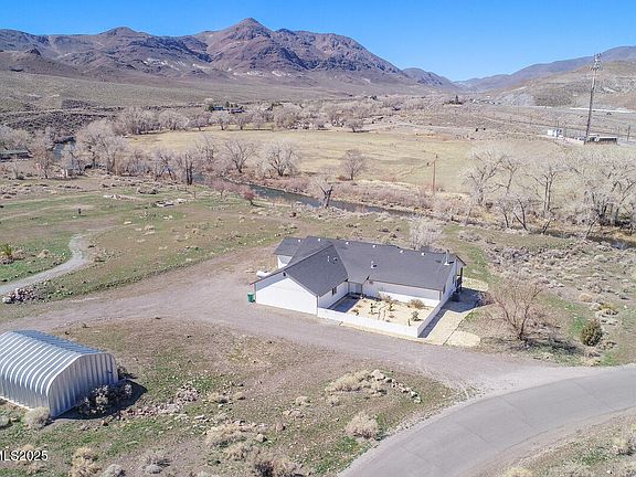 A beautifully remodeled single-story home set on 4.62 acres with rare Truckee River and canal frontage. This property combines modern comfort with versatility, offering space, privacy, and convenience just minutes from shopping, dining, and the Tahoe-Reno Industrial Center. The home features a brand-new 50-year roof, a freshly painted exterior and interior, and an oversized 870-square-foot garage. Inside, the massive kitchen is the heart of the home, showcasing abundant cabinetry, stainless steel appliances, a custom stone backsplash, and striking granite countertops. The open living and dining room glows with natural light and gleaming hardwood floors, centered around a cozy wood stove and sliding doors that lead to a covered deck. Two spacious primary bedrooms provide flexibility, each filled with light. One highlights an abundance of closets, direct access to the new back deck, and a distinctive dual-sided bathroom with a large walk-in shower. The finished basement expands the home's potential, complete with a full bathroom and a granite-topped wet bar, ideal for use as an in-law suite, guest quarters, or entertainment space. The property is designed for both beauty and functionality, with a fully fenced, xeriscaped front yard, a 20x30 steel Quonset hut for storage or projects, and plenty of room to grow. Whether you're relaxing by the river, enjoying the expansive decks, or taking advantage of the property's multiple living options, this home offers a unique combination of lifestyle and location.