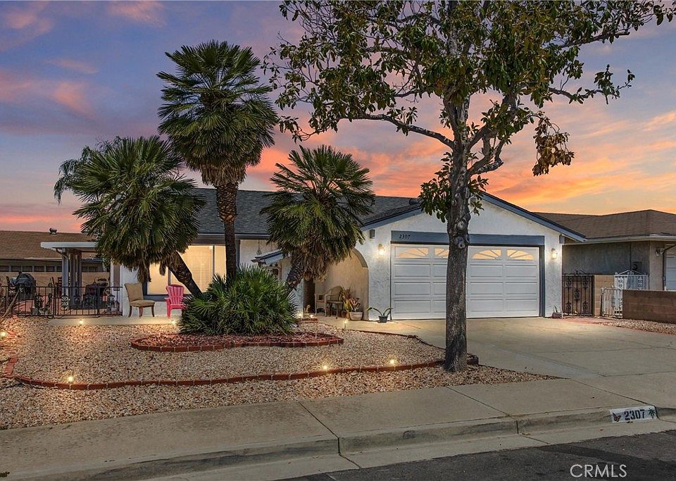 If you are looking for a nice home located in a 55+ community with low HOA $50 a month this is for you!!! Located in El Grande Estates in west Hemet. This home is move in ready, offers 2 bedrooms, 2 baths, 2 patio areas & 2 car garage attached. Recent Upgrades Include: roof replaced in May 2013, water heater installed March 2017, exterior painted April 2020, heater, A/C and thermostat replaced December 2020, garage springs and metal cables replaced March 2021 & toilets replaced 2021. The community offers a swimming pool, indoor hot tub, clubhouse with a library, billiards and card rooms and a beautiful commercial kitchen for hosting parties. This home is just steps from clubhouse and pool and close to shopping & restaurants. This home has low, low taxes and HOA fees. What are you waiting for this home can be yours!!!!