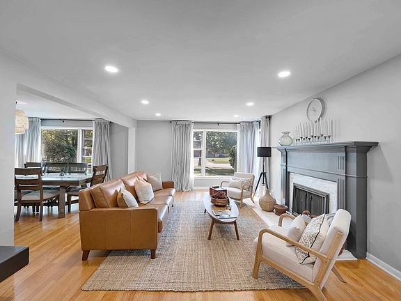 Charming 3-Bedroom Ranch with Finished Basement! Welcome to this beautifully maintained ranch-style home featuring 3 spacious bedrooms and 2.5 bathrooms, nestled in a desirable neighborhood. From the moment you step inside, you'll appreciate the warmth of hardwood floors that flow throughout the main level, enhancing the home's timeless charm. The living room is anchored by a cozy fireplace, creating a perfect gathering spot for family and friends. Adjacent to the main living area is a bright and airy Dining Room. The kitchen offers plenty of cabinet space and has large windows that look out into the 3 season room! The heart of the home extends downstairs to a fully finished basement, boasting a wet bar, a second fireplace, and a large flex room-perfect as a home office, gym, or guest suite. Step outside to enjoy the spacious backyard, complete with a large deck, perfect for entertaining, grilling, or simply enjoying peaceful evenings outdoors. This home combines classic comfort with modern amenities, offering ample space for both everyday living and entertaining. Recent updates- refinished hardware floors (2023) new recessed lighting in the Living Room, New Refrigerator, New flooring in the Sun Room, tuckpointing, French drywell (2025) Water Heater (2025) 2 new toilets (2025) A/C (2023)