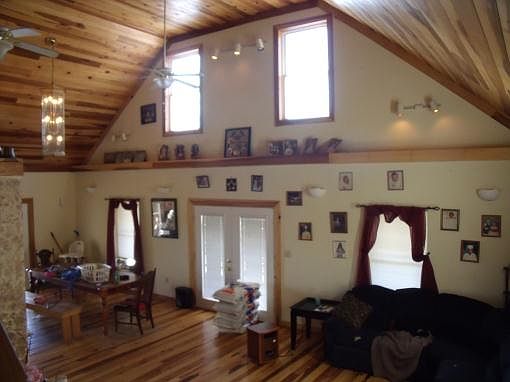 1 1/2 story 4200 sq ft vinyl sided 6 bedroom home with 3 full baths, featuring a great room with a 19' cathedral ceiling and a matching finished poplar hardwood floor including living area, dining room and kitchen overlooked by a large sleeping loft. A large covered deck on the west and southern sides offer a comfortable view of your acreage plus miles and miles more. The finished basement has an equal size great room. The exterior walls are all formed poured concrete with reinforced steel rods on 1 foot centers. The floor joist are all spaced with 1 foot centers and steel "I" beams. The roof is metal and a new Trane Heat and Air system has been recently installed. Water is furnished by a county water line and there is a septic system. It would be difficult to find a more solid built home. The home is offered with 10 acres which is mostly open and gently rolling, fronting on a paved county road. Price $340,000. In addition there is available a 79 acre farm 1/2 open and tillable, the balance is wooded with springs and creek. Price $120,000. Plus another tract that is 82 acres and 1/2 open and tillable with springs and creek. Price $135,000. These 3 tracts can be purchased separately or as a whole. For more information please call me @ 270-646-7335 or e-mail me joyal@metcalferealty.net.