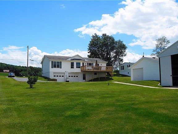One of a kind property, 2000 built ranch, 3 beds, 2full baths on 1 acre. Open floor plan, hardwood floors throughout. Need outbuildings? Steel sided 32x26 barn & detached heated & insulated 2-car garage, AND 2-car attached garage.Gorgeous views abound- balcony in back for relaxing. Roof 2000, HWH 2012, boiler 2000, new ele garage doors. 200 amps and furnace in detached garage. Barn has new overhead lights, poured floor, 220 ele. Full basement. Easy access to 390. Nothing to do but move in!
