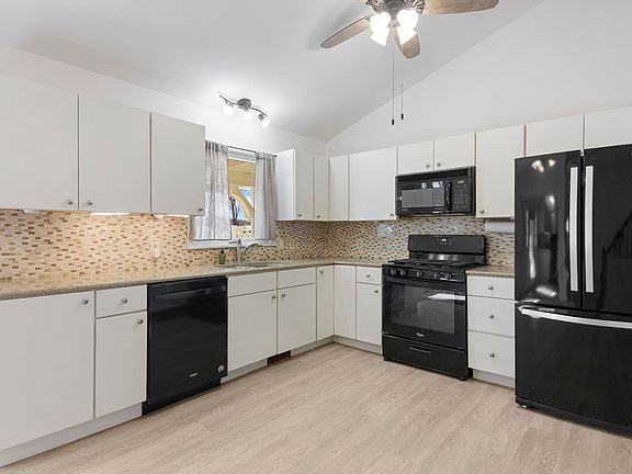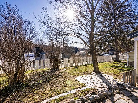 Village of Honor 3 bedroom, 2 bath energy-efficient, air-conditioned home and an attached two-car garage sits in sunshine and offers shade. This immaculate residence offers many updates. Among them are a remodeled primary bedroom suite with a jetted tub, a walk-in glass shower, and heated tile flooring; a four-season addition with skylights and a gas woodstove; a white, black and tan kitchen with quartz counters and newer appliances; and a remodeled full bath upstairs. Adding spaciousness and airy ambiance are the white vaulted ceilings in the living room, kitchen, and addition; and all-new, Cortex vinyl flooring on the main level. Solar panels give you incredible savings on your electric bill ($120/year), and the forced-air furnace is rated 90+. Well replaced in 2019. The encapsulated crawl space keeps your foundation dry. Do your laundry in the washer and dryer found in the painted, partial basement. Step outdoors to the covered patio from several doorways, including the primary bedroom, and enjoy a fenced and landscaped yard. Privacy-seekers can purchase the extra lot next door with a 28x20 cement-block garage and established gardens for an additional $30,000.