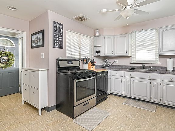 Enormous fenced in yardTwo-car detached garageFinished game roomOpen floor planTwo storage shedsNewer roof and guttersGated entrance