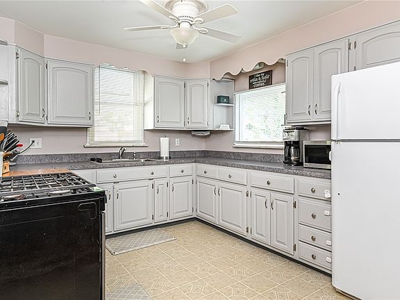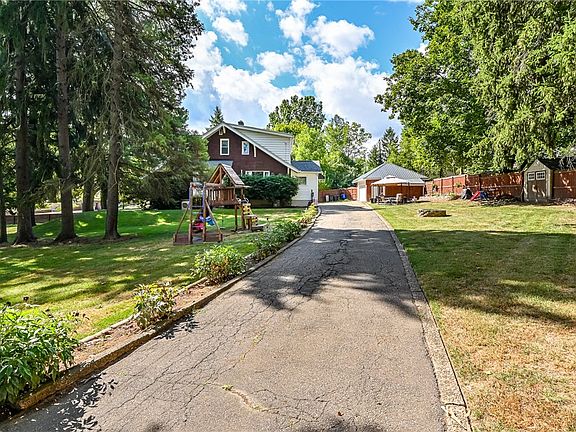 Don't miss out on this bright & airy home w/open floor plan nestled on a .75 acre park-like setting. Soaring high ceilings w/gleaming original hardwood flooring throughout this spacious home w/newer roof & gutters. Huge fully equipped eat in kitchen w/plenty of cabinet & counter space to inspire your inner chef. Gracious sized living & dining room area w/stone cozy wood burning fireplace. Sun drenched three seasons room adds additional play, crafting or seating room on main level. Main level is complete w/den & full bathroom. Second floor features oversized bedrooms, full bathroom & huge walk in linen closet. There is no shortage of closet & storage space in this home. Master bedroom has an additional space that is perfect for a dressing room, etc. Finished game room w/large laundry room & another full bathroom. Enormous fenced in yard w/gated entrance is an entertainers delight. Yard is complemented by a two-car detached garage & two storage sheds all equipped w/electric.
