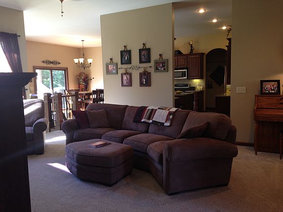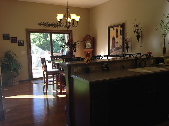 Beautiful, immaculate home only 6 years old in a golf course community. Back yard is huge with beautiful trees and backs up to a Nature Reserve. Main floor: 3 bedrooms, two bath, laundry, 10 ft ceilings, gas fireplace. Master with barrel ceiling and accent lighting; master bath has split vanities, 6 ft jetted tub, large walk-in closet with seasonal rods. Kitchen: hardwood flooring, stainless steel appliances, Corian counter tops with island, accent lighting, large walk-in pantry. Basement view-out:9 ft ceilings, 2 bdrm, 1 bath, large family rm with wet-bar, lots of storage, gas fireplace. All woodwork; maple with cherry distressed stain, all hardware oil-rubbed bronze. Water-well in back yard attached to full sprinkler system, well maintained yard, composite deck off kitchen, concrete patio from basement entry, 3-car garage w/openers. A must see!