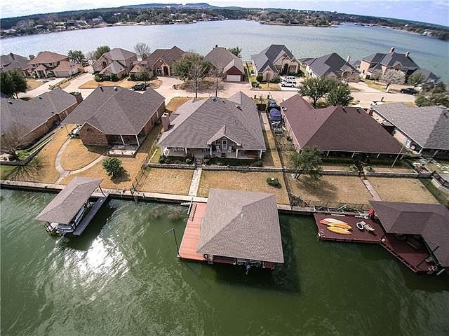 #415 Waters Edge Home! This 4 Bed 2 Bath 2 Car home offers 2 Living Areas, 2 Dining Areas and a wonderful back patio overlooking the water. Spacious Master and Second Living area have direct access back patio directly. Plantation Shutters, Detailed Crown Molding and New Carpet finish out this lake home. The large boat dock with lift and sundeck provide easy access to main body Lake Granbury. This is a must see home in Waters Edge!