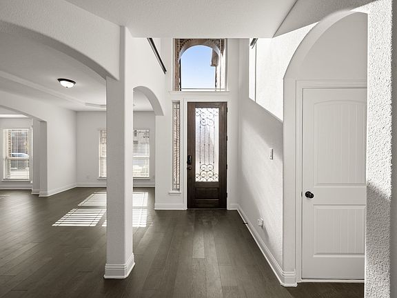 MLS# 21117732 - Built by First Texas Homes - Ready Now! ~ Upgraded elevation w brick and covered front porch. Covered back patio w large back yard. On prime home site within community close to amenity center. Master bedroom down w guest, study down and 4 bedrooms up. Curved staircase, island kitchen w breakfast bar, double ovens, custom cabinets, deco wood cabinet vent over cooktop and corner pantry. Granite tops in kitchen and master bath. Bench seat master shower and corner tub. Media room with surround sound prewire and family room surround sound prewire. Abundant wood floors in entry, extended entry, kitchen-nook-pantry and family room. Gas heat and tankless gas water heater. Security system and smart wiring features.