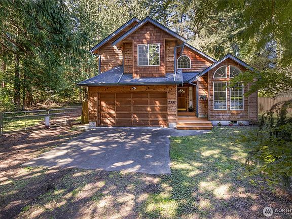 Snuggled into the forest this gracious home is tucked away on a quiet cul-de-sac in the middle of Port Townsend. Situated on an extra large lot plus elbow room from an unopened street to the south & an ally behind. Inside there are dramatic vaulted ceilings in the living & formal dining room with a cozy propane stove. The kitchen is open to a den with a woodstove & a breakfast nook. The back deck is plumbed with propane for your BBQ. Upstairs there is a large primary bedroom suite complete with a jetted soaking tub with a view of the trees. Two additional generous size bedrooms share a Jack & Jill bathroom. Plenty of storage in the large double garage & garden shed as well as space for an RV or boat next to the garage. Welcome home!