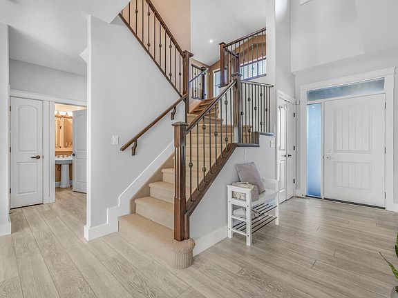 You'll love this custom-built 2-storey with over 3,200 sq. ft. of developed space, 3+2 bedrooms, and a main floor den on a quiet street in prestigious Rutherford. The gourmet kitchen offers upgraded Kitchen Craft cabinetry, granite counters, stainless steel appliances (2022–2025), walk-in pantry, 7' island, and large sunny windows. Open-concept nook with patio access flows to the formal dining room and spacious family room with gas fireplace and garden doors to the landscaped, fenced yard. Upstairs features a large bonus room with vaulted ceiling, 4-piece bath, and 3 bedrooms including a primary suite with 5-piece ensuite, jetted tub, dual sinks, glass/tile shower, and huge walk-in closet. The finished basement includes a games area, 2 bedrooms, den, and 3-piece bath. Recent upgrades include triple-glazed windows on main and upper (2025) plus newer stove, washer and dryer (2025), water softener (2023) . Family-friendly location near amenities, trails, a short walk to Johnny Bright K-9, and future LRT.