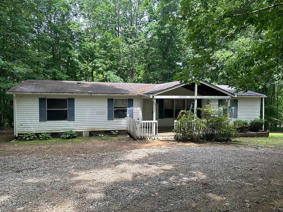 Peaceful Country Living — Minutes from the City! Welcome to your new home! This spacious 3-bedroom, 2-bath manufactured home sits on over 2 semi-private acres, offering the perfect blend of peaceful rural living and unbeatable convenience. Located just 9 miles to downtown Hillsborough, 12 miles to downtown Durham, and only 13 miles to the nearest grocery store, you'll enjoy the best of both worlds with privacy and accessibility. Home Features Spacious open-concept living area Large primary suite with private bath Kitchen with plenty of cabinet space. Washer/dryer hookups. Front porch and back deck perfect for relaxing or entertaining. Exterior Highlights include 2+ acres of land, plenty of room to garden, play, or expand. Semi-private lot surrounded by mature trees. Room for outbuildings, RVs, or a workshop. Whether you're starting out, downsizing, or looking for your own slice of the countryside, this home is a rare find at an affordable price. Home is located on a private road. There is not currently a written road maintenance agreement.