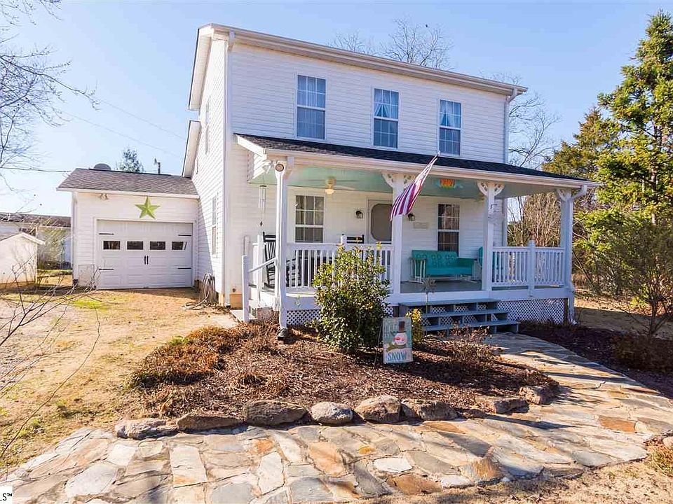 Cottage with large fenced backyard, above ground 30' diameter pool. Rear deck, slate rock fire pit area and back platform, authentic water well. Circle drive with 600' driveway.