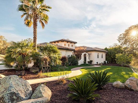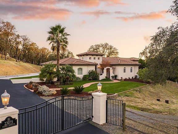 Tuscan style ranchette located in a desirable North Auburn neighborhood of custom homes. Gorgeous single-story features TWO luxury master suites, each boasting a sitting area by the fireplace, large walk-in closets & outdoor access. Entertainers dream floorplan with ample indoor & outdoor gathering/dining areas. Timeless appeal & everyday function collaborate in the Chef's kitchen with newer stainless appliances, abundant storage & counterspace. Great room concept opens to 2 of the 3 covered patios with picturesque views of the sunset & surrounding countryside. Let's talk SHOP! This shop has heat & can't be beat. 1/2 bath, car lift, drive-thru doors, full RV hook ups, covered boat/RV storage, epoxy floors, workbench and storage galore. Extensive concrete work not only keeps cars off the dirt but provides a sport court with basketball & tetherball. Property is beautifully maintained, fenced and usable. Come experience the perfect combination of country & community. Fully PAVED Road welcomes walking. Location quite yet only minutes to shopping & sought-after schools. Further explore 23075 Hidden Ranch via the video walk through.