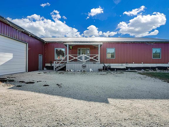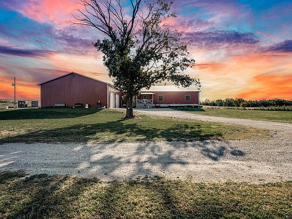 TWO HUNDRED AND THIRTY ACRES of farm and hunting land!!! Incredible country living with over 5,600 finished sq ft, 2 kitchens, 2 attached shops and 3 ponds! Completely private from the road the long winding driveway leads you to this acreage oasis! Built in 2016 this HUGE home creates tons of opportunities for income or communal living. As you walk into this home the grand living room with a huge stone fireplace and gorgeous wood floors immediately highlight spacious, peaceful living! Open to the living room is the massive kitchen with stone counter tops, an island and a breakfast bar along with space for casual dining. Off the front door is the formal dining option. Wood flooring continues down the hall to the 3 bedrooms on the main floor with a giant primary suite including 2 walk in closets and a beautiful bathroom with a walk in shower and a soaking tub!!! Also on the main floor are 2 more bedrooms, the main floor laundry and another bathroom. Downstairs the second LARGE living room space and the second kitchen offer plenty of space for a separate apartment! Down the hall are 4 more bedrooms and 2 more bathrooms! Downstairs also offers unfinished storage and laundry. Additional stairs to one of the 2 attached shops allows for private entry and exit to the incredible outdoor space, perfect for renting to hunters! Between the main floor and shops another half bathroom and storage function as a mud room. A back deck and pergola invite you to take in the scenic surroundings!!