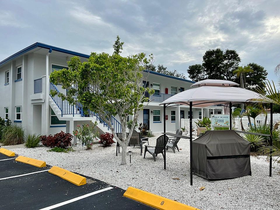 Awesome 2nd floor corner unit with daylight shining into every room - new windows throughout. 2BR/1BA condo in Indian Rocks Beach, FL. Steps to the sand and 1 blk to the intracoastal. Washer/Dryer included, parking for 2 cars, great pool, tile throughout. There are only 8 units total in this building making it feel more like a private resort. Your Living Space has a great view of the nicely landscaped front yard with seasonal flowers always adding color to the property.