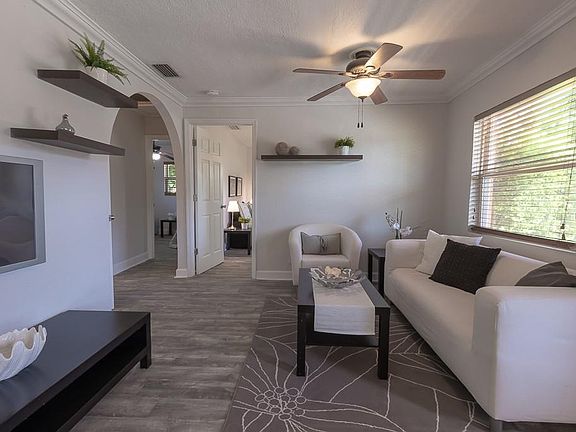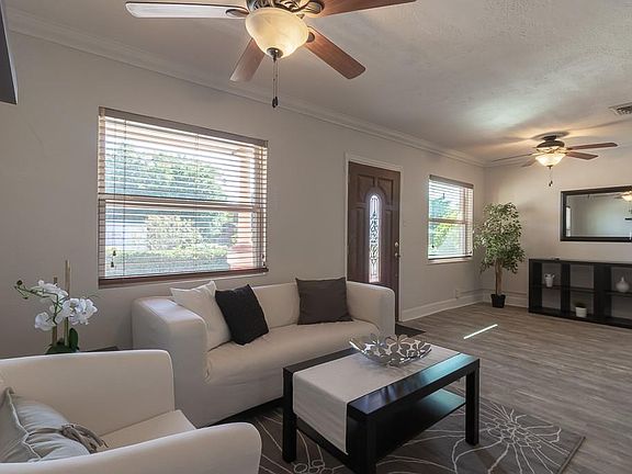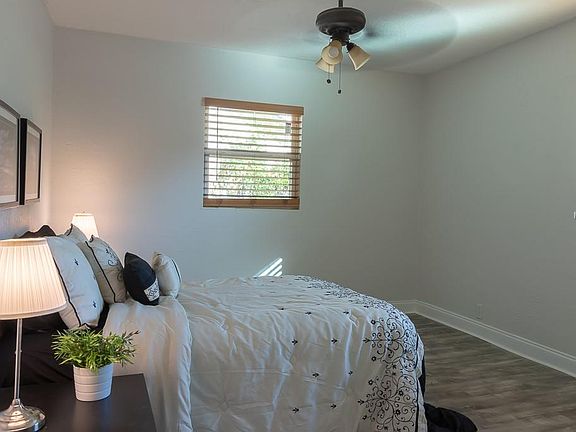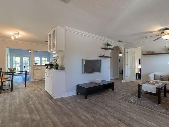 Beautiful West Bradenton home on 1/4 acre lot! This is a 4 bedroom 2 bath home with a split floor plan and so much natural light! There is new luxury vinyl flooring throughout along with fresh paint. The guest bath has a soaking tub and is located by two of the four bedrooms. The 4th bedroom could be a playroom or office. Large kitchen offers plenty of counter space and cabinets. The large dining room is just off the kitchen with bay windows and double French doors leading out back. The .acre lot has a fenced backyard and is filled with pavers, plastic storage shed and mature landscaping. This property is staged/vacant and easy to view. Schedule a showing today!