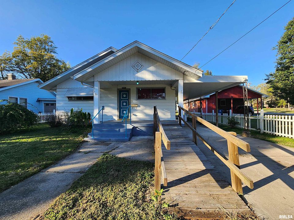 Welcome home! This charming 3-bed, 1-bath gem offers delightful curb appeal with a classic white picket fence and a beautiful vintage front door. The option of ramp access in the front provides easy entry for everyone, and the recent roof and solar panels offer peace of mind and eco-friendly and low cost energy. This home is situated just down the street from the Murphysboro Park District and Riverside Park. Enjoy easy access to the Bocce Courts, Chep Kessel Field, the Band Shell, and the Dog Park. Your covered parking options include an oversized attached 3-car carport plus an additional detached 1-car carport. The outbuilding in the back would be perfect for extra storage, a workshop, or a hobby space. The carpets are even covering original hardwood floors. Don't miss the opportunity to make this charming and upgraded house your new home!