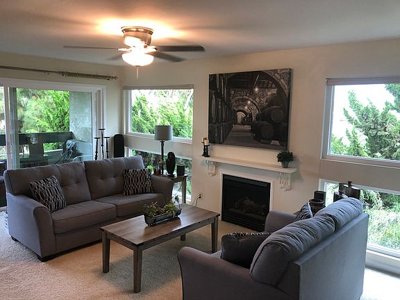 Light & bright upstairs end unit - lots of natural light and backcountry views! One of the best locations in the complex! Cozy fireplace in living room. Unit to be rented out with mounted TV above fireplace in living room. 2 large master suites including full on-suite baths, walk-in closet in master bedroom. Dual pane windows, new ceiling fans and light fixtures throughout. Stackable washer /dryer in unit and newer appliances in kitchen. Close to stores, restaurants, and beach! Two-car covered parking space with one side that has been made into a storage unit. Renter is responsible for internet and electricity (water/sewage/trash included in rent). (More pictures to be added to listing.) Offering a 6-12 month lease (the $3,150 is offered for a 12-month lease). Owner pays water/sewage/trash. Tenant is responsible for electric and internet. No smoking is permitted. Up to two pets are allowed (pet rent of $50-100 per pet per month depending on the size of the pets and an additional pet security deposit of $200 per pet is required). Renters insurance is optional (but recommended).