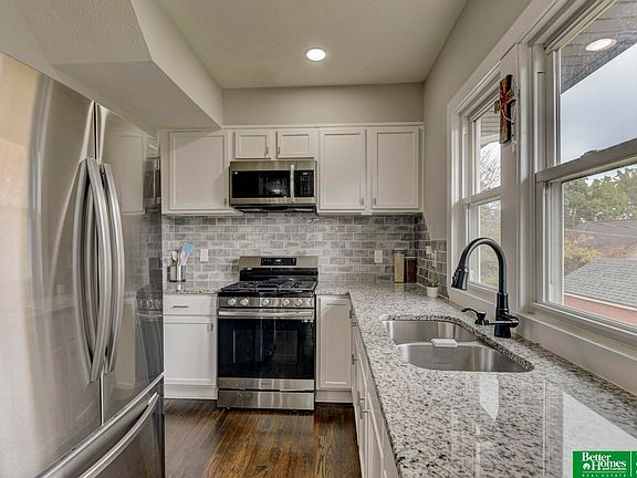 Contract Pending Charming and fully renovated 1.5-story with thoughtful updates inside and out! Recent improvements in the last two years include NEW siding, roof, water heater, and a 6-ft privacy fence. The finished second-floor attic spans the length of the home—perfect for a playroom, office, or hobby space. Inside, the modern white kitchen shines with granite countertops, subway tile backsplash, and stainless steel appliances. Enjoy refinished hardwood floors, fresh neutral paint, new interior doors and hardware, and updated lighting throughout. Two main-floor bedrooms share a beautifully renovated full bath with custom tile shower. Lower-level primary suite features a stunning ensuite with double vanities and a large tiled walk-in shower with rain head and soap niche, plus dual closets and ample storage. Additional perks include vinyl replacement windows, a parking pad for two, and convenient interstate access.
