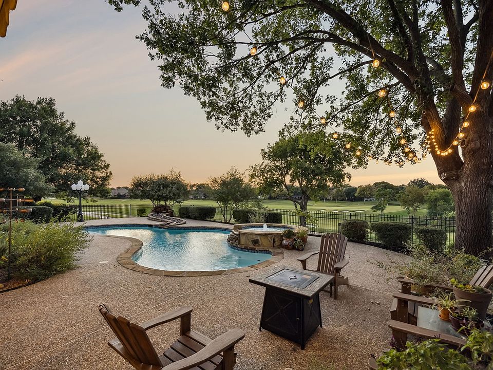 Nestled on a quiet cul-de-sac in the prestigious Stonebridge Ranch community, this exquisite two-story home offers breathtaking views of the 12th fairway and a perfect balance of comfort, elegance, and resort-style living. Featuring 4 spacious bedrooms and 2.5 bathrooms, this residence has been tastefully updated with freshly painted interiors and rich Johnson Hardwood Tuscan flooring, creating a seamless flow throughout its open and functional layout. The main level boasts living and dining areas, including an office, formal dining room, and an inviting living space that connects to the breakfast nook and well-appointed kitchen—ideal for both everyday living and entertaining. Large windows flood the home with natural light while showcasing panoramic views of the golf course. Upstairs, a versatile loft provides space for a media or play area, while the bedrooms offer generous closets and comfort for all. The primary suite serves as a serene retreat with a cozy fireplace, private balcony overlooking the pool and golf course, and a spa-like ensuite bath with soaking tub and separate shower. Step outside to your backyard sanctuary, where a sparkling pool and spa invite relaxation or lively gatherings. Whether basking in the sun or hosting evening get-togethers, the outdoor space provides endless opportunities for enjoyment, framed by the beauty of the 12th hole fairway. Living in Stonebridge Ranch means access to exceptional amenities, including scenic ponds & lakes, multiple playgrounds, pickleball and tennis courts, and miles of walking trails, a toddler playground, seasonal splash pad, a ropes obstacle course, basketball court & concert stage. There are also two country clubs & two golf courses for additional membership fees. Perfect for golfers and non-golfers alike, this rare golf course property offers both a premier location and an elevated lifestyle in the heart of McKinney. Located near shopping, dining and entertainment. Search address on YouTube for videos.