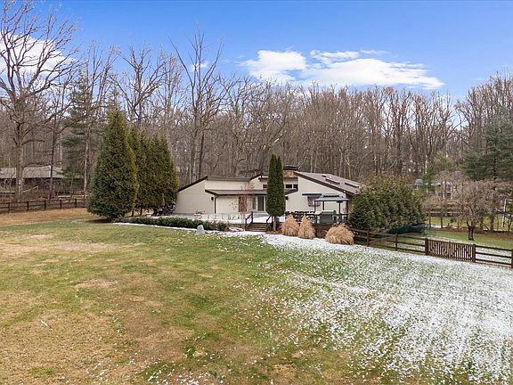Welcome to a true modern masterpiece—where cutting-edge design meets serene, private acreage. Completely renovated with a striking contemporary aesthetic, this exceptional 3-bedroom, 4-bath residence is set on a sprawling 4-acre estate and delivers luxury living at every turn. The heart of the home is a show-stopping, professional-grade kitchen featuring ZLINE appliances, an oversized waterfall island, sleek custom cabinetry, and a layout designed for both elevated entertaining and everyday living. Sunlight pours through expansive windows, highlighting clean lines, open spaces, and seamless indoor-outdoor flow to the wraparound deck overlooking the grounds. The primary suite is a private retreat, offering a custom walk-in closet and a spa-inspired ensuite with a dramatic wet room designed for total relaxation. Each additional bedroom is generously sized with access to beautifully appointed full baths, providing comfort and privacy for all. An oversized garage, stylish bar, and game room complete this one-of-a-kind offering—perfect for hosting, unwinding, and living boldly. Set against the backdrop of four lush acres, this property is the ultimate blend of modern luxury, space, and sophistication. Over one acre is fenced. New windows and sliders, archeticual shingles, spray foam and many more updates. Pool is cracked and the pool is being sold as is.