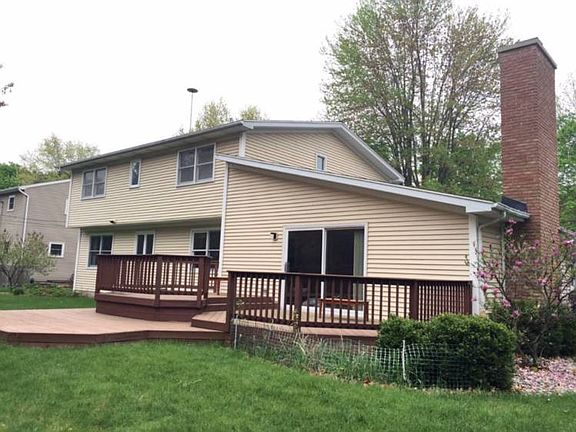 This is a 2 story, 4 bedroom, 2 1/2 bath home with a 2 1/2 car garage, and over 2400 sq ft of living space. New in 2004; siding, roof, furnace, central air, deck, shed, hardwood floors in the family room, egress window, and the two upstairs bathrooms redone.