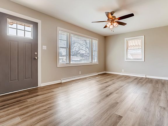 Completely remodeled, light-filled 2-bedroom, 1-bath home with a detached 2-car garage tucked away on a beautiful lot on Evansville's East Side. Some of the many updates include: new flooring throughout; fresh paint; updated lighting; new kitchen cabinets, counter tops, and appliances; a new bath vanity, light fixture and tiled bathtub surround; and new entry door. The great room offers an abundance of natural light and space for entertaining. The eat-in kitchen boasts stainless appliances and a nice area for a dining table. Off the kitchen is a mud room with laundry hook-ups and a door leading into the fully-fenced back yard. Two bedrooms and a full bath complete the home's floor plan. Move-in ready just for you! Sale includes: range; dishwasher; microwave; and refrigerator.