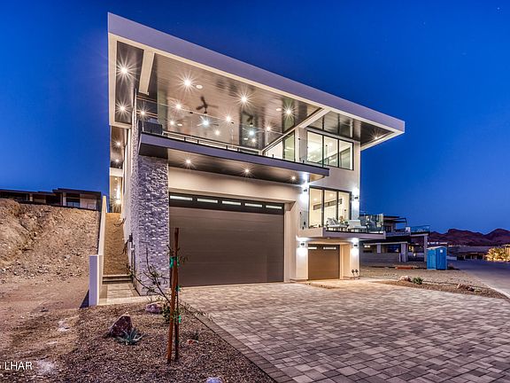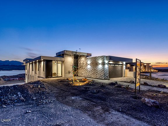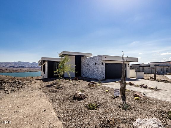 Welcome to Riviera Lake Havasu, a distinguished gated community nestled along the Colorado River in Lake Havasu City, AZ. This newly constructed residence in the Marina View neighborhood embodies luxury lakeside living. Just a golf cart ride from the new marina and boat launch, this 3,160 sq ft home offers breathtaking lake and mountain views. Inside, you'll discover five bedrooms, four elegant bathrooms, a game room/lounge, and an open-concept kitchen and living area that seamlessly transitions to a grand patio deck through exquisite multi glass sliding doors. The expansive 2,720 sq ft of garage provides ample space for your boat, RV, and other recreational vehicles, with a 14' tall x 20' wide RV garage door. A private 30x15 boat slip is included with your purchase. This home features top-tier Thermador appliances, 7.5'' white oak flooring, elegant porcelain tile, custom cabinets with Blum self-closing hardware, and striking leathered Dekton kitchen countertops. Call today to set up a tour.