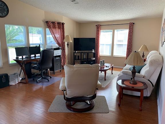Listed by the Official Sales Team of Cypress Lakes Village ***This home is located within a 55+ resort style leased land community; age restrictions apply.*** Views abound from the side lanai and back deck. Golf, lake and wood views of the Championship golf course 16th tee box. This home offers 2 bedrooms and 2 bathrooms with two newly installed vanities with quarts counter tops in the ensuite. The master bedroom is large and can easily accommodate a king-size bed. The kitchen has granite countertops along with tiled backsplash with a center island to showcase the white cabinetry. The kitchen opens to the adjoining family room making this a perfect area for entertaining. At the front of the home is a large living room which expands the whole width of the home. Just off the living room is the dinning room which is also open to the kitchen. The long driveway, which could easily accommodate 3 cars, leads to the spacious shed with plenty of room for a golf cart which is included in the sale of the home. The home is just two streets away from the clubhouse which is the hub for all of the activities here in the community. This home comes partially furnished and will not disappoint. It is a must see! 3 MONTHS of FREE GOLF on both our Championship & Executive Courses included in sale. ***Listing details are provided by homeowner and are not guaranteed. ***