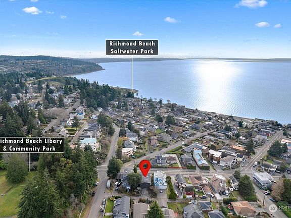 The opportunity you’ve been waiting for! A light & bright home w/ big Sound & mountain views w/ room for your personal touches. A groovy '70s contemporary w/ vaulted ceilings & a wall of windows that bring the outside in. Large, remodeled open kitchen is the perfect place to whip up a meal w/ friends. Consider adding a deck or even a 3rd floor (buyer to verify). Tucked in a neighborhood of higher-priced homes, any investment you make will be supported. Just steps to Richmond Beach library park & a short stroll to the Saltwater Park & restaurants. Just 3 miles north is charming downtown Edmonds w/ copious restaurants, coffee shops, ferry terminal & numerous amenities. Easy access to I-5 & new light rail at 185th. Excellent Shoreline schools!