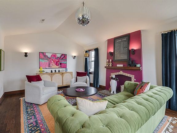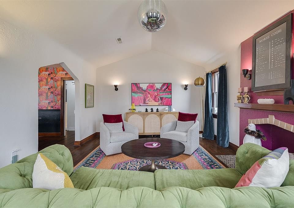 For expert guidance and up-to-date details on this home, contact the listing agent directly. Thoughtfully remodeled and full of character, this two-bedroom, one-bathroom bungalow in the sought-after Shepherd Neighborhood is a striking blend of vintage charm and modern style. Every detail has been curated to create a home that is both functional and unforgettable. A teal front door sets the tone for what lies beyond—an interior that embraces bold aesthetics and striking design. The living room is anchored by a fuchsia fireplace, a stunning contrast to the refinished hardwood floors that run throughout. A disco ball overhead catches the light, casting subtle reflections that shift with the day’s rhythm. It's. A. Vibe. In the dining room, tiger-print wallpaper makes a statement, balancing the home’s eclectic energy with a touch of sophistication. The fully updated kitchen and bathroom feature contemporary finishes and sleek tile, seamlessly integrating modern convenience into the home’s distinctive aesthetic. Outside, a private backyard offers plenty of space and a two-car garage. Located in a neighborhood known for its charm and privacy(no through streets here), this home is an opportunity to own something truly unique. For those who appreciate design that goes beyond the ordinary, this bungalow is not to be missed.