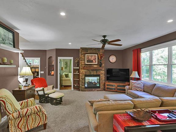 LUXURY 2-STORY, 4200+sqft, set on 1.07 acres and LOADED WITH PREMIUM FINISHES! Four spacious bedrooms (3 ensuites), 3.5 baths, 2 fireplaces, SECOND FLOOR LAUNDRY ROOM, main level office with French doors, sun room with fireplace, 3-season room, stained concrete patio, drop zone with lockers & walk-in closet, walk-in kitchen pantry, private rear staircase to upper bonus room storage. Gorgeous hardwood floors, Mission style maple painted cabinetry & stained doors, granite counter tops, extensive custom tile, stone fireplace surrounds, elegant light fixtures, stainless appliances. Private foyer entry leads to the open living room that showcases the craftsman staircase and stone surround on the double-sided fireplace. Bright kitchen features white cabinetry, large center island, huge walk-in pantry, open formal dining area and convenient access to the 3-season room. Upper level finishing includes a master suite with two walk-in closets, massive bathroom filled with custom tiled shower, soaking tub and long vanity with twin sinks and make-up station. Second and third bedrooms features private sinks and walk-in closets and share a tub/toilet room. Convenient second floor laundry room. Lower level finishing includes a large family room with cork floors, guest room currently used as a fitness room and full bathroom. Unfinished area has direct garage access. Mechanic/efficiency highlights: Geothermal and forced air systems for efficient zoned heating/cooling, Low E windows, Nest thermostat, spray foamed box sills; radon mitigation system; gas & electric range hook-ups; 4-zone programmable sprinklers on city water. Meticulously manicured landscape with a wooded perimeter for ultimate backyard privacy. Call to schedule a private tour of this EXCEPTIONAL HOME!