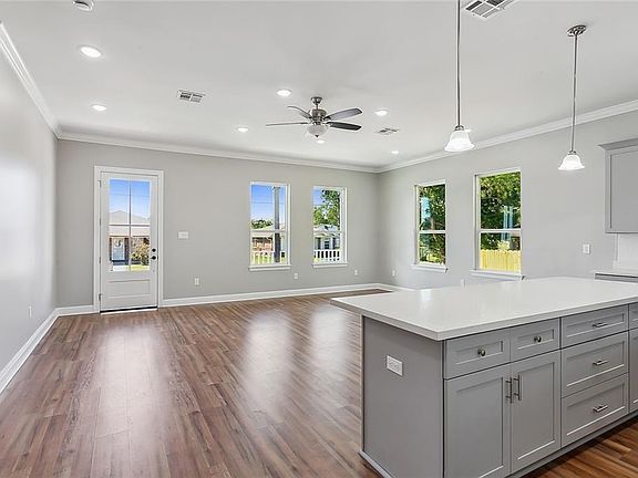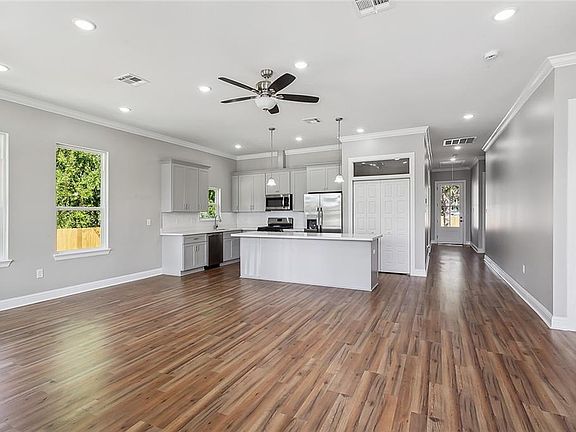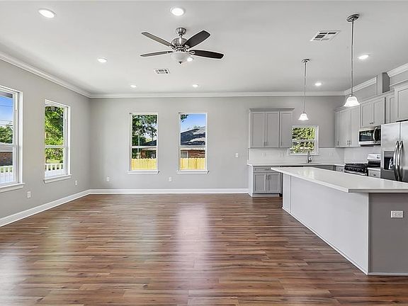 This beautiful 4br/2.5 bath offers a large living room and dining room area. High ceilings, quartz countertops, SS appliances, plenty of cabinet space. Primary bedroom features large walk-in closet. Contemporary hardware, modern light fixtures, and canned lightings throughout house. Inside laundry, driveway for off street parking, covered back porch and patio overlooking huge backyard.