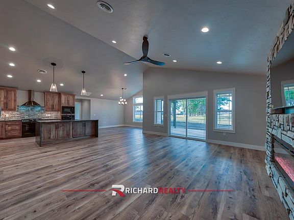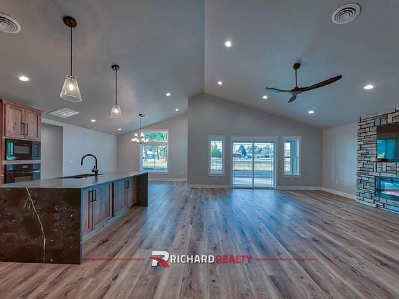 Your Dream Home! Brand-new Rustic Modern Farmhouse by McVey Construction — 1,925 sq ft on one level featuring 3 bedrooms, 1 3/4 baths, and a heated 2-car garage. Situated on a .29-acre lot with space to build a shop and park an RV. The high-end products throughout, tasteful color combinations, and great design make this home truly exceptional. It blends modern luxury with rustic charm —offering great curb appeal, a covered front porch, and an expansive back patio. The open-concept great room boasts vaulted ceilings, natural light, and a stone fireplace, perfect for entertaining or relaxing. The stunning designer kitchen features custom knotty alder cabinets, granite counters, a leathered granite waterfall island, and ample storage. The master suite is charming and bright, complemented by a beautifully finished bathroom. Don’t miss this one! Schedule your private showing or take a 3D virtual tour today.