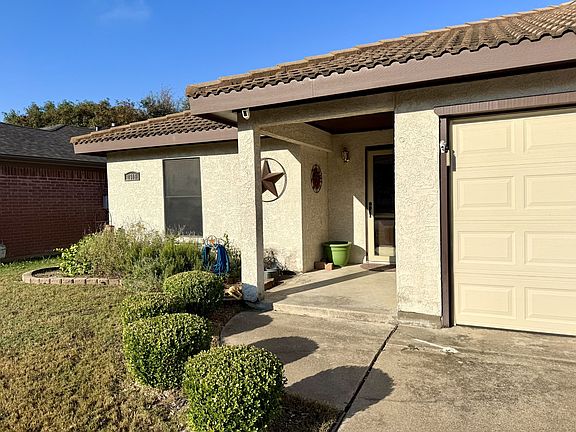 Sweet Move-In Ready 3-2-2 STUCCO Home with Easy Access I-30... Located in a Quiet Cul-De-Sac, this Lovely Home Features: Living Room with Wood-Burning Fireplace, Mantle, Vaulted Ceiling and OPENS to Galley Kitchen and Dining Area. Private Primary Bedroom in Back with Ensuite Bath and Walk-In Closet. SPLIT Floorplan: 2 additional Bedrooms near Hall FULL Bath and Laundry Closet. Additional HOME Features and Upgrades: Ceiling Fans throughout, Original Concrete Tile ROOF, Oak Cabinetry, Marble Vanities, Wood-Laminate Flooring, Ceramic Tile, Carpeting, Solar Sun Screens, and Large Backyard SHED for Extra Storage. Best of All, there a GREAT Covered Back Patio with 2 EXTRA Open Outdoor Living Patios for Dining, Entertaining, and Relaxing! Lots of Space to Run and Play TOO!