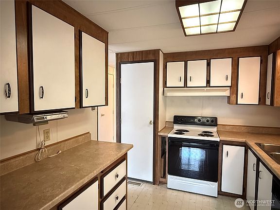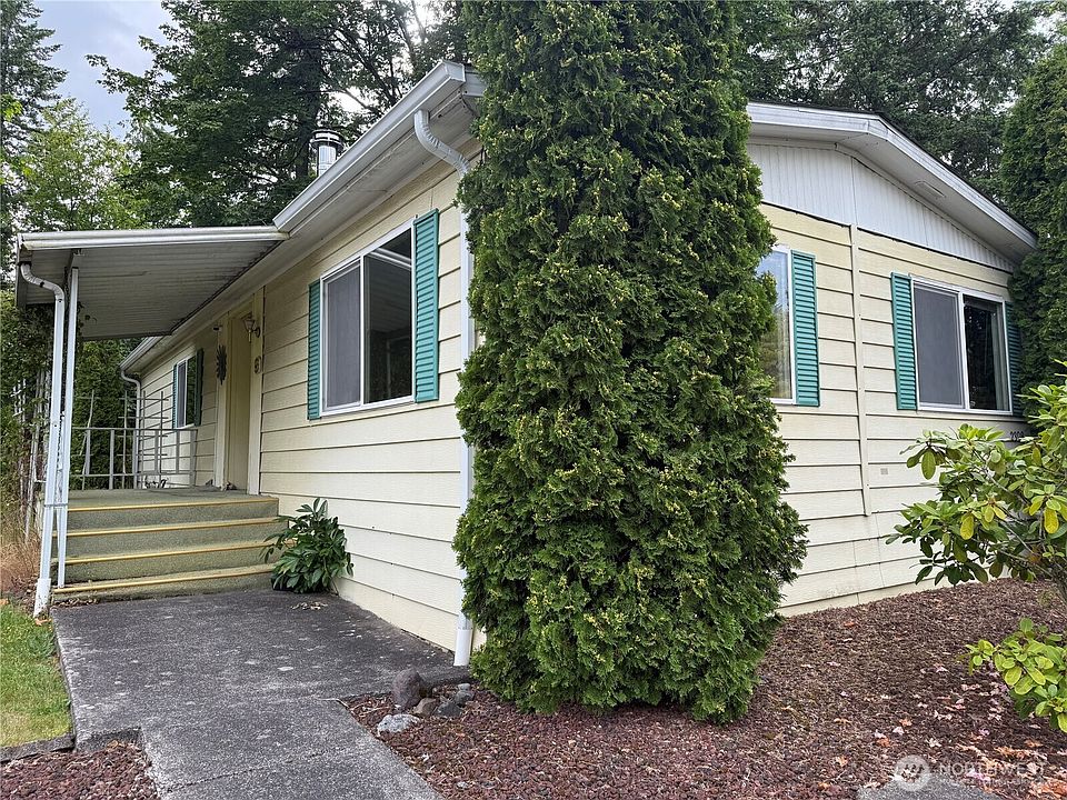 Amazing opportunity to live in this two bedroom, 2 bedroom 1 3/4 bath home located in the most sought after 55+ community in Crystalaire for under $90K. Close to shopping, restaurants, downtown activities, Enumclaw Expo Center, Enumclaw Golf course, Mt Peak and so much more. Roof was installed in August, 2024, new laminate floors in primary bath & new carpet throughout bedrooms, hallway, living and dining rooms. Spacious primary bedroom with private 3/4 bath. Second large bedroom with built in shelves & closet with added drawers. Spacious backyard with newer fencing, spacious yard and patio. Heat pump to help enjoy those hot days of summer. Covered carport with extra long driveway for off street parking.