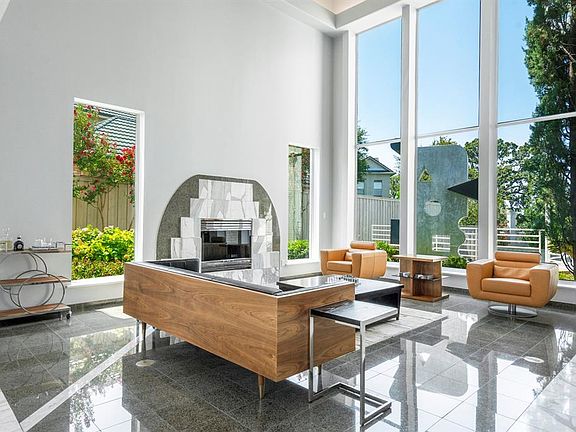Entertainers dream home! Architecturally distinct and contemporary custom home! Open concept layout with soaring ceilings, stunning marble and hardwood floors. Abundance of windows allow for stunning scenic views & natural light. Suspended wrap around balcony overlooks the private pool & spa complete with a food prep area - perfect for summer bbq's and parties! Oversized private media room with 4k projector and surround sound! Full wet bar off kitchen! Large luxurious owner suite with private balcony, fireplace, sitting area, cork floors, over-sized en-suite and ample his and her closets! Located in highly desirable community with private security, tennis, parks, lake & near Arlington's entertainment district!