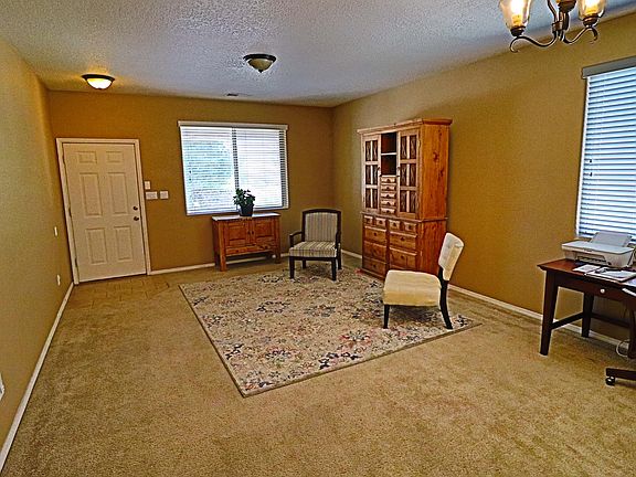 Huge lot in gated community with beautiful covered patio, Grass area, basketball court, and fenced area for play equipemt, garden, or large dog run. Gas fireplace with built-in entertainment center in family room is open to kitchen and eating area. Separate living/dining. Media room upstairs will include media equipment (projector, screen, speakers, amplifier) and furniture. All three bedrooms are upstairs. Master suite is very spacious with separate tub and shower, double vanity, and large walk-in closet