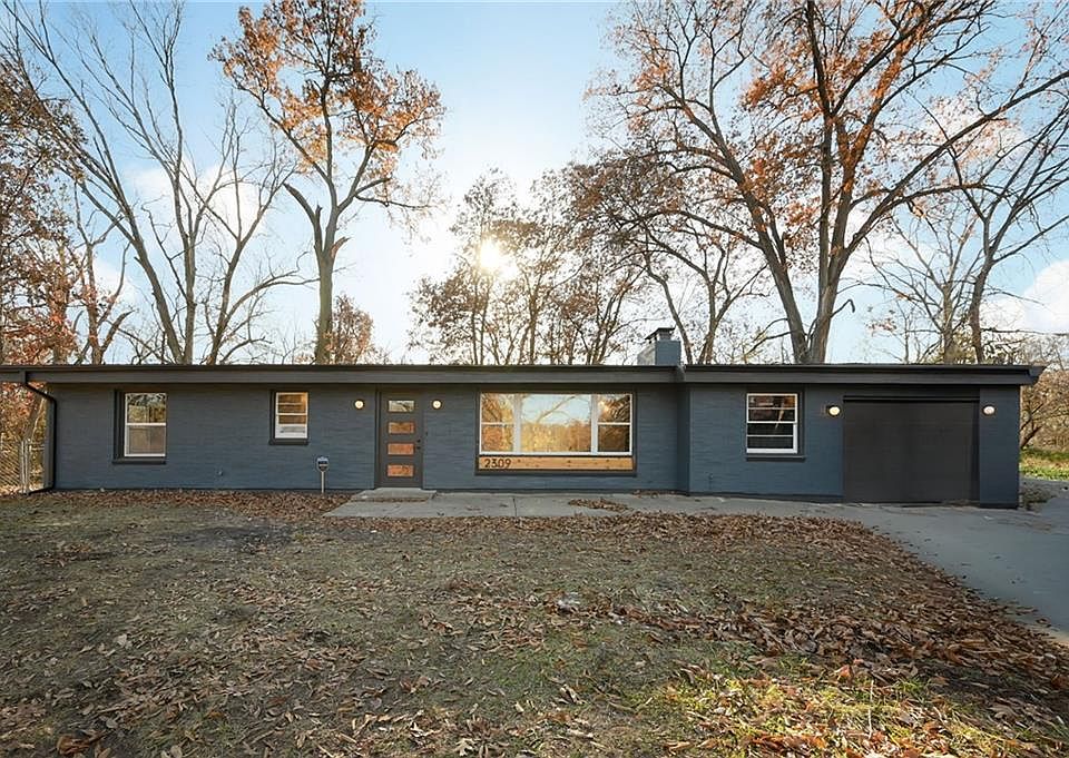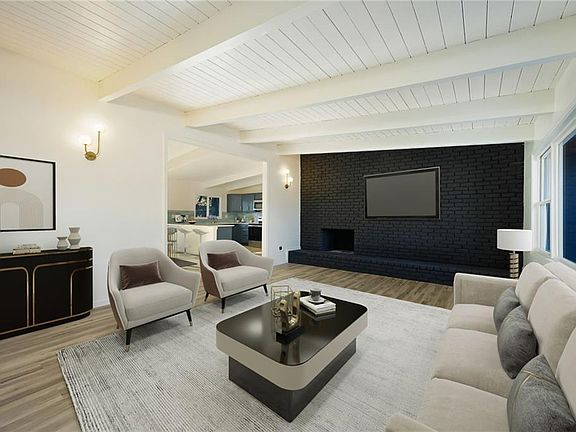 Inside, vaulted ceilings and a striking brick fireplace elevate the home’s mid-century charm while creating a fresh, modern ambiance. The fully updated kitchen boasts brand-new cabinetry, sleek countertops, contemporary tile work, and stainless steel appliances. An oversized patio door connects the kitchen to the outdoor back patio and private, tree-lined yard—ideal for outdoor dining, relaxation, or gatherings. Don't miss this exceptional opportunity to make this your new home!