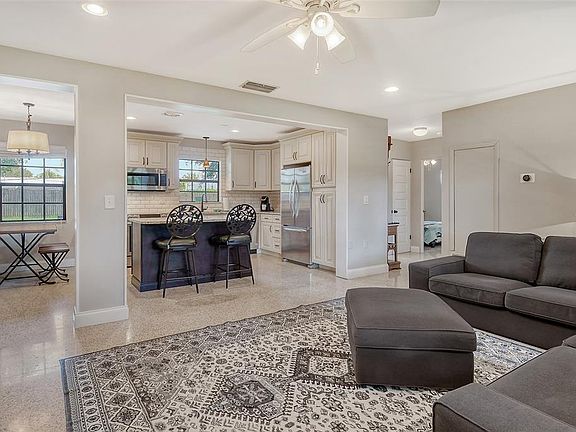 Lovely single family home in Ridgewood available for a short term rental. This light and bright two bedroom two bathroom turnkey furnished single family home has a lots of appeal. Open kitchen/living room/dining room combination, terrazzo floors throughout, lots of windows and one car attached garage. The kitchen has stainless appliances, lots of counter space and cabinets, closet pantry and a kitchen island with seating. Primary bedroom has a king sized bed. The guest bedroom has a queen sized bed. Bonus room off the living room can be used as an office. First bathroom has a tub/shower combination and the second bathroom has a stall shower. The home has a very large, fully fenced yard. Perfect for a dog. The owner will consider a small to large sized dog with a non refundable $300 pet fee. SEASONAL RENTAL AND WIDE OPEN FOR DECEMBER 20230 APRIL 2024. Rent for December through April is $3,900 monthly. Rent for May through November is $2,600 monthly. This will not last long so call today!!
