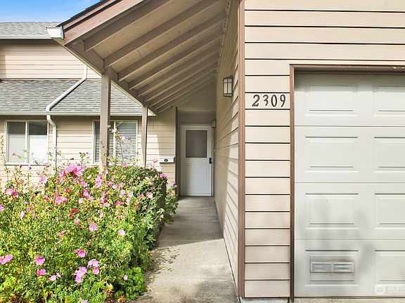 Welcome to this very private-feeling Sand Dollar Condo, close to all amenities of downtown. This end-unit has great privacy & edible blueberries landscaping. This convenient condo lives like a house with plenty of storage including attached garage w/ladder to attic. There’s a full kitchen, an open living & dining area with a sliding door to a back patio. Main floor has bedroom, bath & laundry rooms. Upstairs is the spacious bedroom ensuite. There is an open loft portion that facilitates light and circulation for comfortable heating & air conditioning from the energy efficient heat pump. The HOA is professionally managed and welcomes all ages and pets. WSG, recycling, & basic cable & internet utilities are included for total of $556 dues.