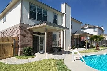 Filled with amenities and space galore, this gorgeous 2-story 4 bedroom, 3.75 bath, 2 dining, 2 living room home has approximately 3200 square feet of living space and so much more. Landscaping adds to the stately exterior which includes a 2-story entryway above the front porch. A warm and inviting upgraded wood pergo floor in the formal dining room sets an appealing tone for the whole interior. The dining room also included chair rail, crown molding and arched entries. A fireplace highlights the living room which also features tile floor. The breakfast bar separates the living room from the spacious island kitchen. Built-ins including cabinets and a desk are great features of the kitchen, which also has tile backsplash, walk-in pantry and glass cook top stove. Attached is a large breakfast area with access to the patio. Also located downstairs is a private suite with wood pergo floors, double door to the back porch, 2 closets and an attached full bath. A half bath completes the downstairs.