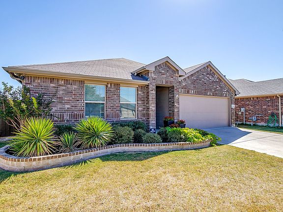 Welcome to this stunning custom-built home in the desirable Highlands of Chapel Creek subdivision! Nestled on one of the largest and highest lots in the neighborhood, this beautiful 3 bedroom, 2 bath home offers both luxury and convenience. Located just off I-30 and minutes from downtown Fort Worth, you’ll enjoy quick access to premier dining, shopping, and entertainment. Step inside to find an inviting open floor plan filled with natural light and elegant finishes. The spacious kitchen features granite countertops, under-counter lighting, and modern appliances, while the family room includes built-in ceiling speakers for an enhanced entertainment experience. Both bathrooms are beautifully finished with tiled bathing units, and energy-efficient touches like a tankless water heater and two-inch blinds throughout add comfort and style. The primary bedroom includes a large walk-in closet with a built-in gun safe, offering ample space for organization and secure storage. The oversized garage is equipped with a custom size 18' door, plus extra attic decking for additional storage. Outside, the backyard is an entertainer’s dream, boasting a vinyl in-ground pool with a surrounding deck, custom brick planters, downlighting, and holiday lighting. Pet lovers will appreciate the automatic dog door, and the property also includes three outdoor storage buildings perfect for mowers, tools, and equipment. From its elevated position, the home offers breathtaking panoramic views, allowing you to see 10 to 15 different firework displays on holidays, a truly unique perk! Enhanced with a comprehensive eight-camera security system, this home perfectly balances comfort, convenience, and peace of mind. Come see this one today, won't last long.