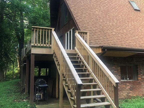 The main level features a woodsy comfort with the wall of windows bringing light and the outside in. Tenants can enjoy grilling on the newly replaced deck spanning the length of the house. The deck overlooks a small creek and wooded area for privacy. Above the living room is a loft and large bedroom. Two other upper level bedrooms boast interesting ceiling angles, tongue and groove walls and spacious closets. The lower level, accessed by interior stairs or its own dedicated exterior ground level entry features a quaint kitchen with bar, two bedrooms, and a full bath. The Headley location is convenient to campus and is on the North East side of the IU Stadium placing it close to shopping with easy access to 37/69. Beautiful Lake Griffy Nature Preserve boat dock and trails are around the corner for recreation and exercise. There are multiple parking spaces.
