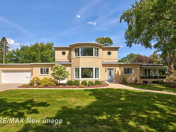 Nurmi-built mid-century home with art deco flair in Bay City's Historic District! Offering 4 bedrooms, 3.5 baths, and nearly 2,900 sq ft above grade plus a partially finished basement. Hardwood, slate, and new Life Proof flooring throughout. Updated kitchen with stainless appliances, double wall oven, counters & backsplash. Formal dining with new $8k picture window, 3-season sun porch, and main-floor laundry. Basement features retro wet bar, multi-door fridge & fireplace. Newer roof, central air, electrical updates, 2-car garage, and fenced yard. Walking distance to downtown, riverfront, shops & parks. A rare blend of historic charm and modern updates!
