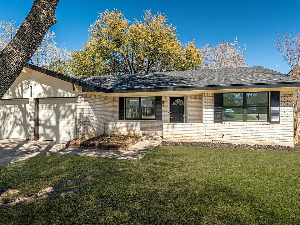 This fully renovated home boasts an updated kitchen that seamlessly opens up to one of two living and family rooms. Eat at the kitchen island, or in the breakfast nook overlooking the back patio and yard. Updated vinyl plank floors throughout the home add a modern feel, while graphic tile in the hallway bath and new vanities in both bathrooms add a unique and stylish touch. The home also features new paint throughout, updated electric wiring and panel, new garage opener and motor, and a new roof. Full list of ALL upgrades is in the transaction desk. Entertain your guests in the spacious backyard and create the outdoor kitchen of your dreams on the large slab patio. The property is surrounded by mature trees, adding privacy and natural beauty to the home, but also within walking distance to Running Bear Park for walking and biking trails, picnic areas, and playgrounds. **Appraisal report dated 3.10.23 shows a Final Estimate of Value is $325,000.00. Report available upon request.