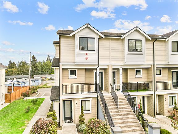 Built in 2018, these modern Townhomes and apartments located in the Allenmore area of Tacoma. Conveniently located on the Pierce Transit line with ample on-site parking. These modern units have solid quartz surface counters, plenty of cabinet space and all appliances included. Homes contain full-size washers and dryers too. Amenities include night patrol, designated parking, pet friendly, and a smoke-free environment.
