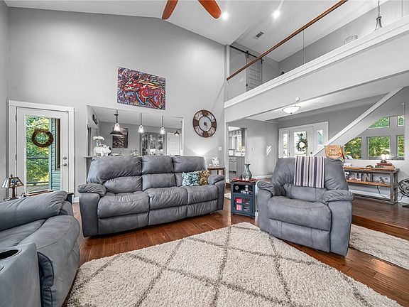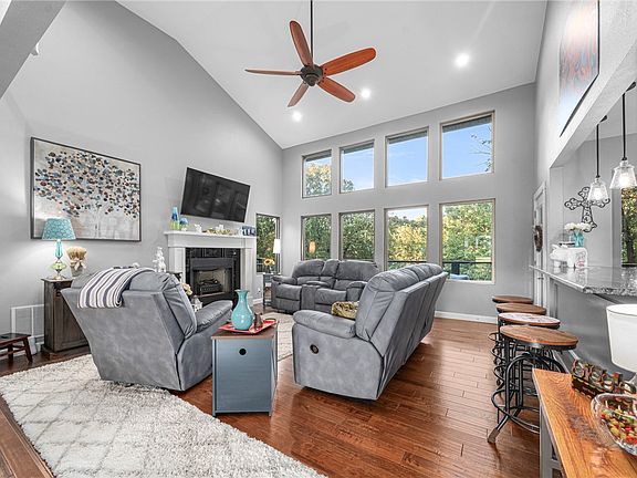 Farmhouse charm on the outside meets sleek modern living on the inside! 4 bedrooms 3.5 bathrooms, 3,215 Sq Ft. Soaring 16 ft ceilings plus a wall of commercial grade windows give you a WOW as you walk through the front door. This home has an open kitchen w/8ft bar connecting living and kitchen. Granite counters, 5-burner gas stove with grill, new cabinets, and built ins make this kitchen a chef's dream. This three level home is unique with the upstairs being dedicated to the primary bedroom and bathroom- a true retreat. The walk-out basement houses two bedrooms, full bathroom and game room. You will find another primary suite on the main-level as will. You will find two decks tht span the length of the home with wooded views. This home was completely gutted and remodeled top to bottom just 9 years ago and the owners have made sure it is energy efficient with 3 HVAC units, 50 gallon circulation pump, and an encapsulated attic. This one will surprise you the second you step inside.
