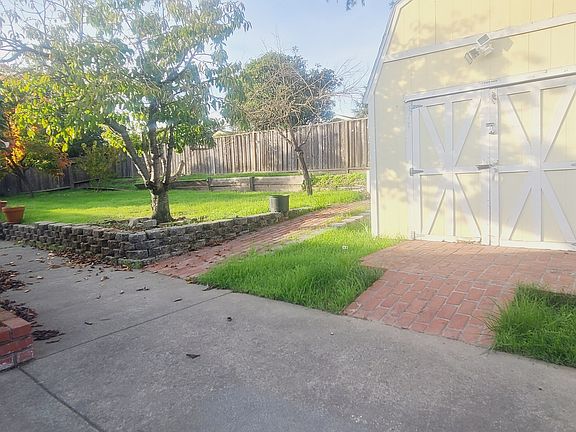 Spacious Backyard Oasis: Plenty of outdoor space for enjoyment, featuring several mature fruit trees and a well-maintained exterior with a newer roof and fresh exterior paint.