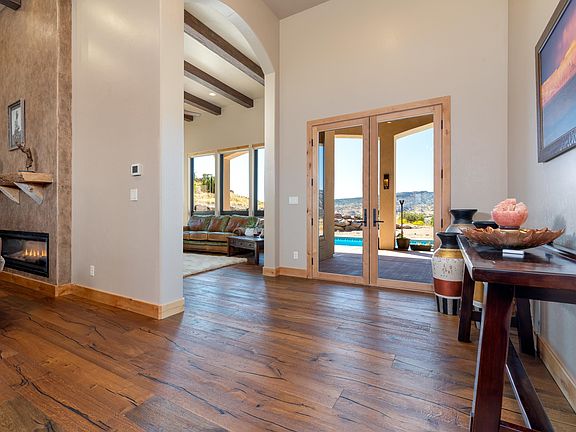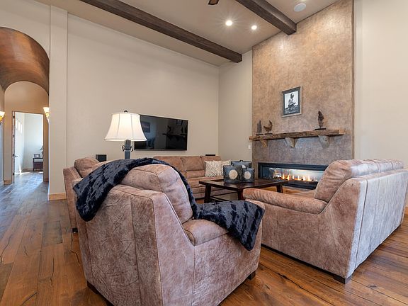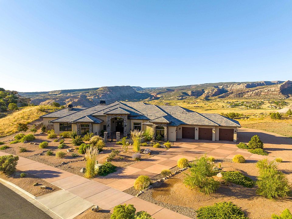 4504 SF on 1.75 acres in Redlands Mesa = hard to find combination. This 2019 Parade of Homes beauty has all the bells and whistles with smart home capability for lighting, window coverings and surround sound. The back of the property spans 387 feet allowing unobstructed Monument views featuring a large pergola, tiki torches, salt water pool, hot tub, outdoor kitchen and huge covered patio. Inside you'll find windows perfectly placed to take advantage of the scenery, from the gourmet kitchen through the living area to the primary suite with fireplace and steam shower. Bedrooms all have an ensuite bath, the executive office with custom shelving takes advantage of a look at the golf course. Large, 3 car garage + golf cart bay. Soaring ceilings and rustic touches throughout give this well-built home strength and character - you won't want to miss this one!